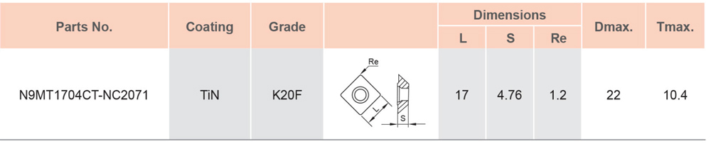• Universal grade for all kinds of steel <30HRC, non-ferrous metal and