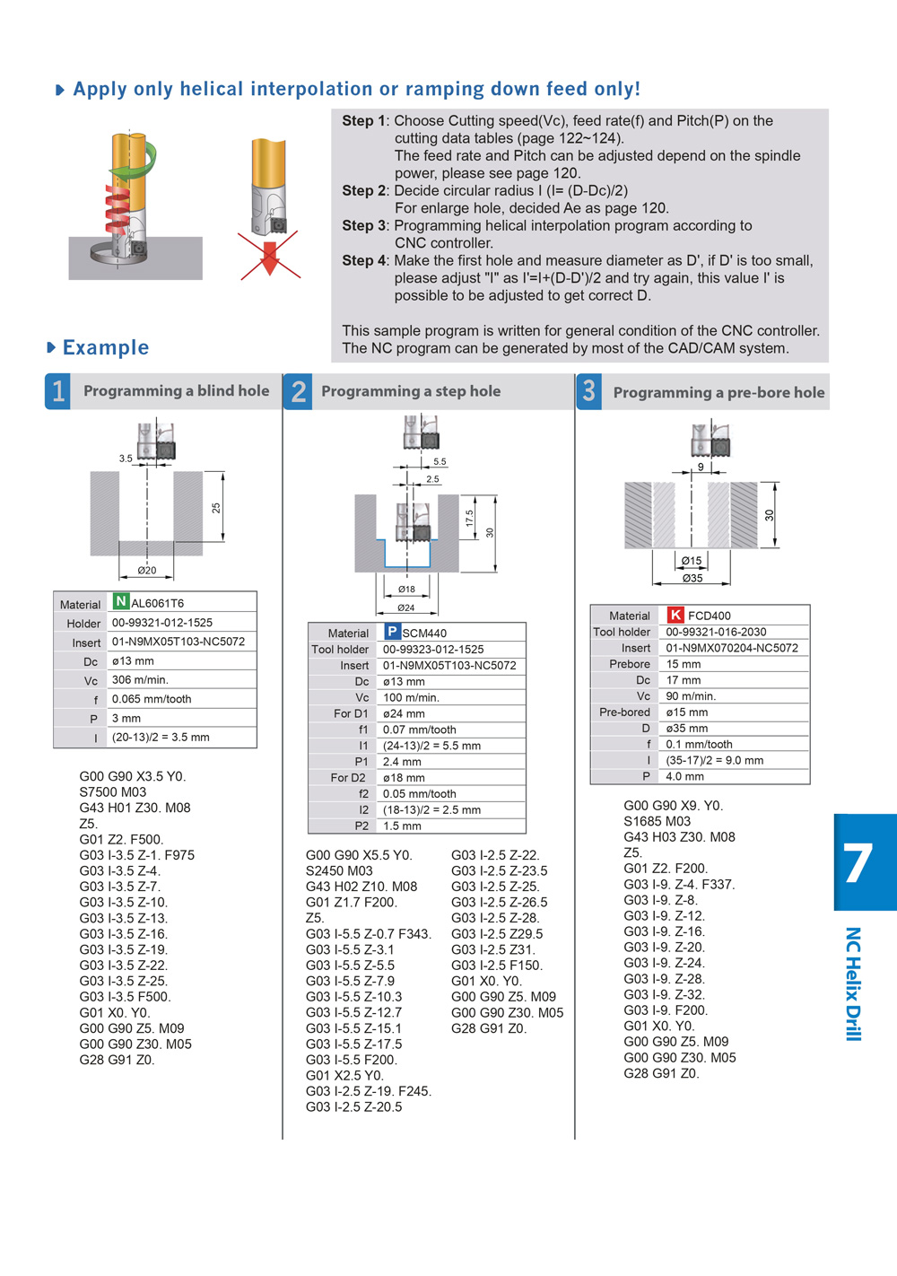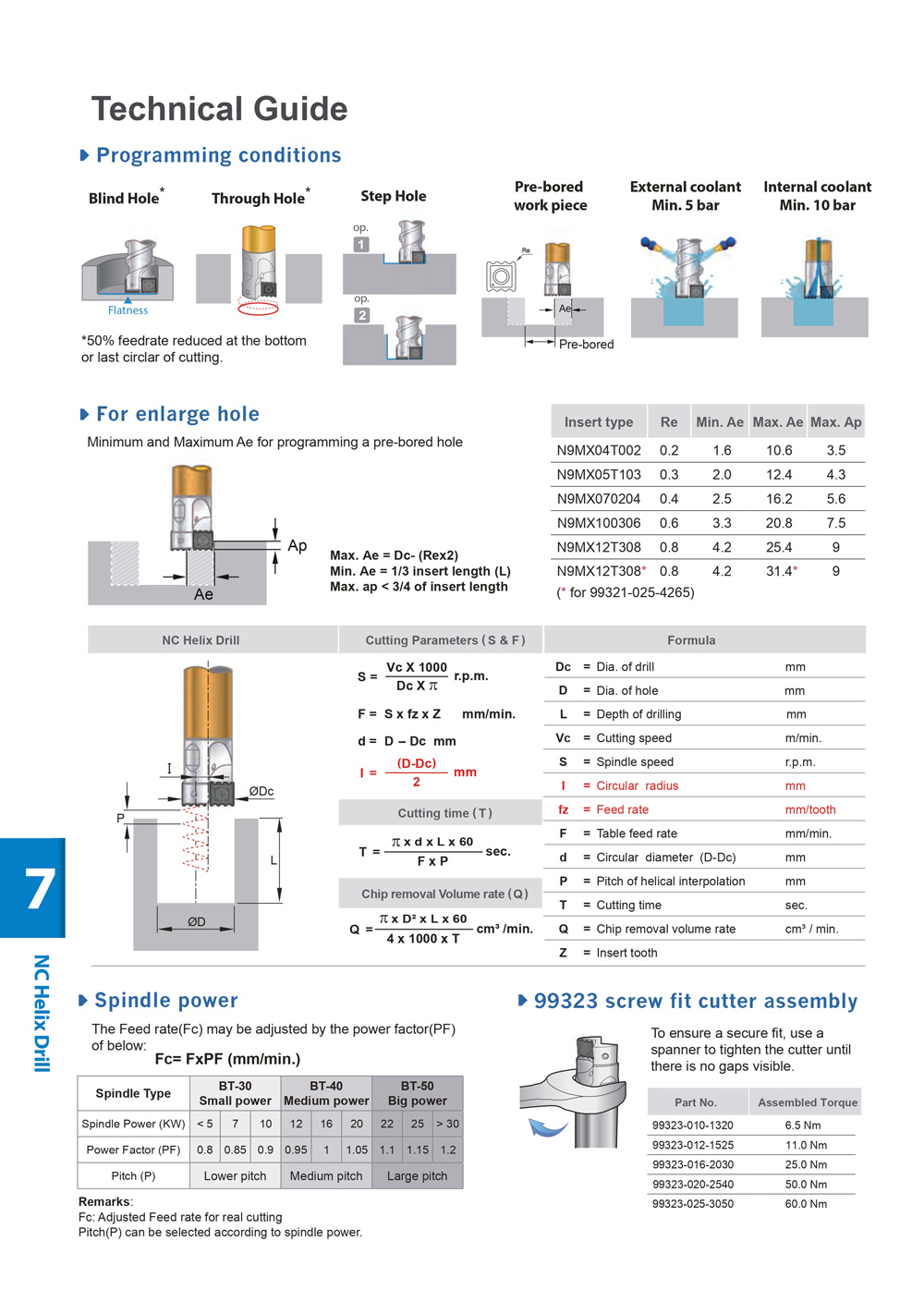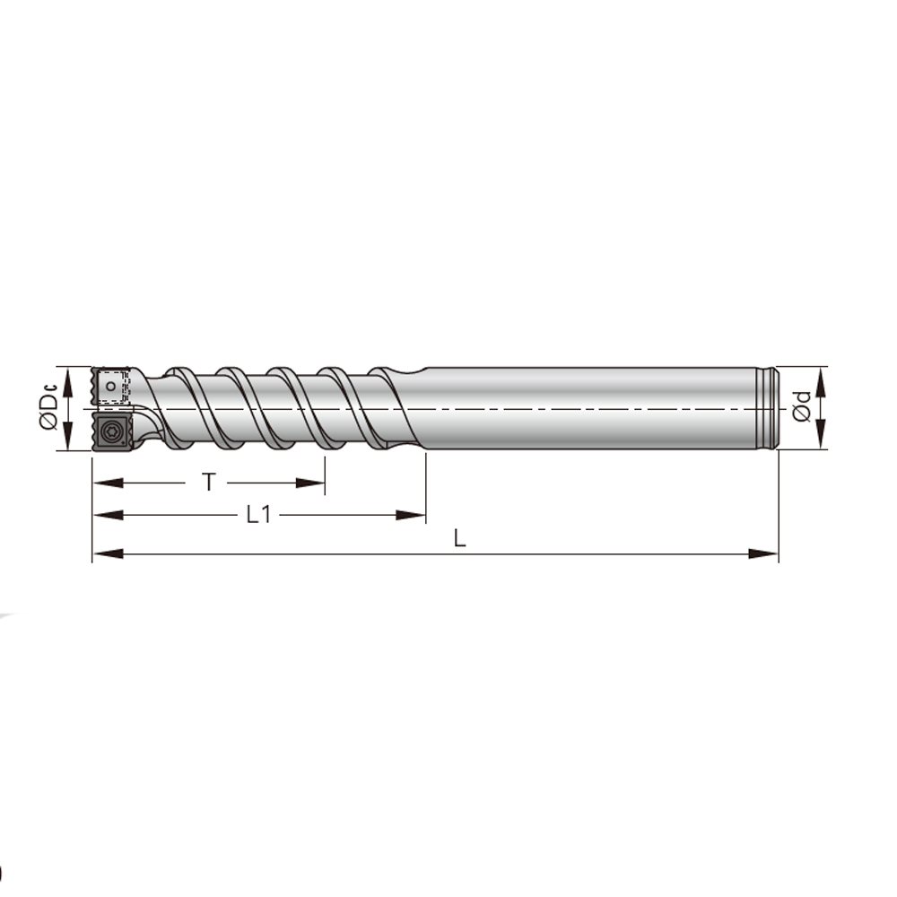 | Code | Parts No. | Type | D min. (mm) | D max. (mm) | ØDc (mm) | T (mm) | L1 (mm) | L (mm) | Ød (mm) | Insert Type | Max. Ramping Angle |